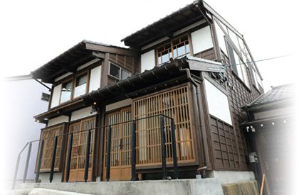 「大正ロマン」をイメージしてリノベーションした「おたや西」は、こじんまりと落ち着いた静かなたたずまいの宿。
