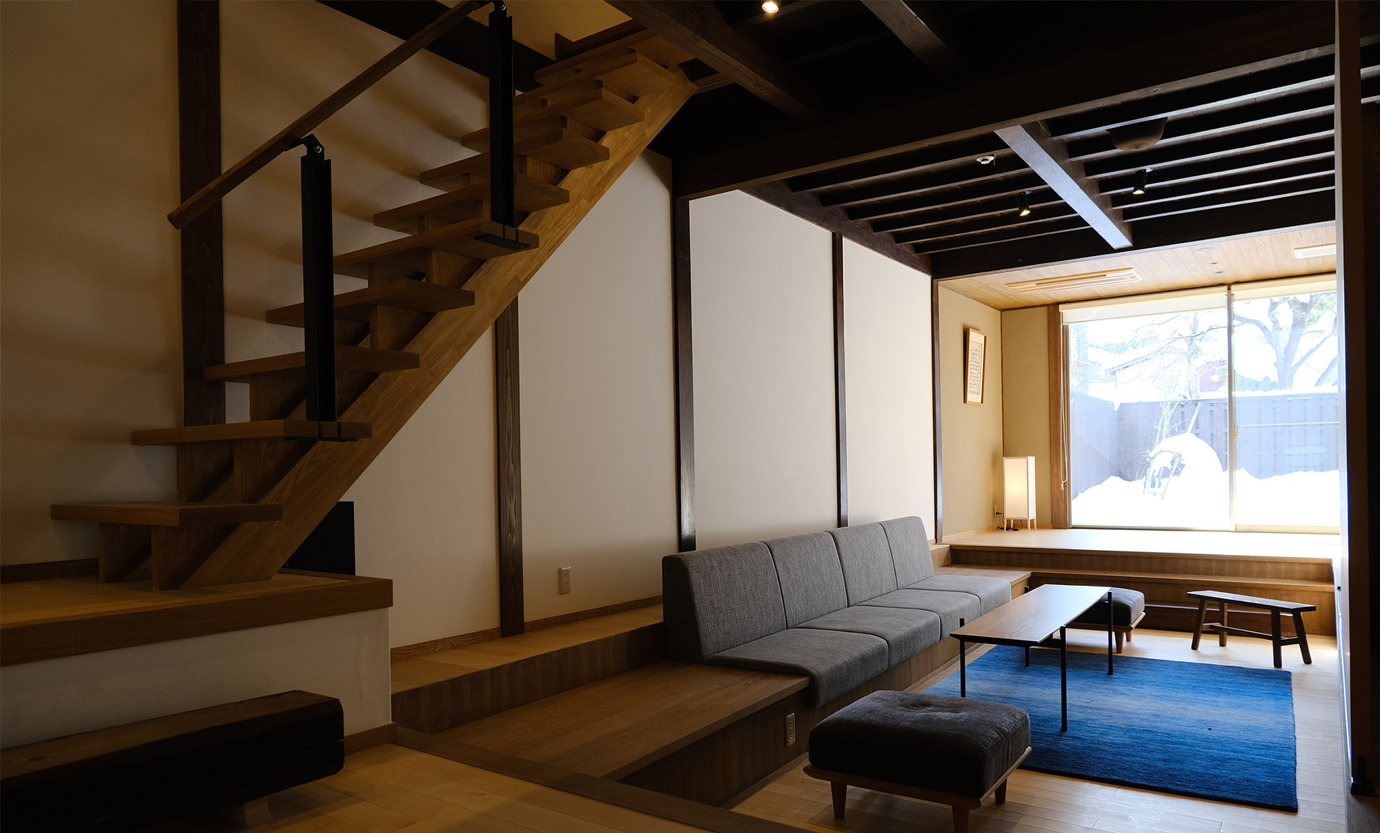 「昭和モダン」をイメージしてリノベーションした「おたや東」は、長屋のたたずまいを活かしてデザインされた様々な空間を持つ宿。